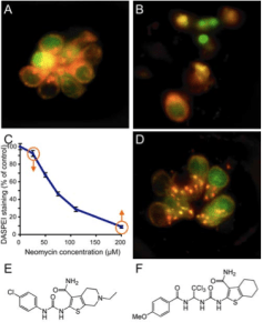 By screening for both compounds and mutations that protected against this cell death, the researchers were able to investigate the underlying molecular mechanisms. A class of small molecules, benzothiophene carboxamides, was found to be protective against neomycin-induced cell death, specifically the molecules PROTO-1 and -2. In addition, several mutations were found to modulate sensitivity to neomycin, including one, sentinel, which substantially protected against cell death.