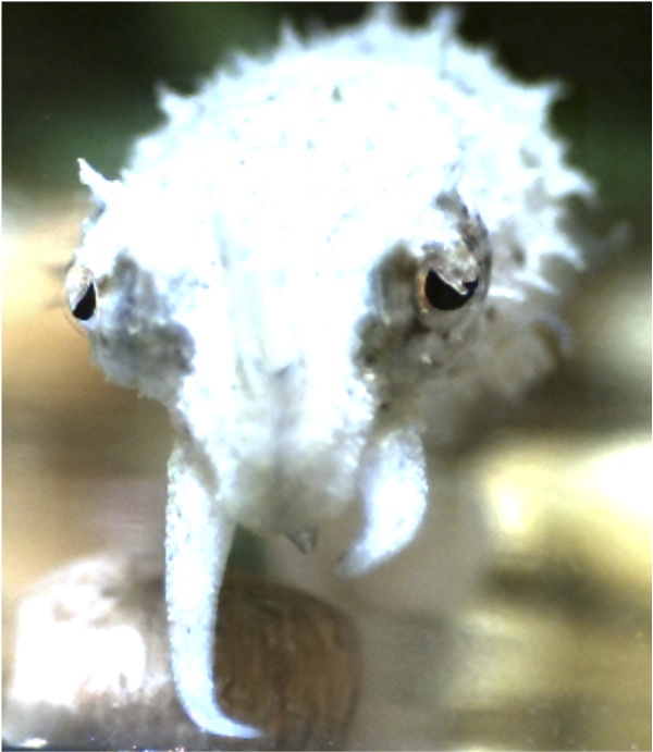 The Huberman laboratory is also interested in how the visual systems of different species is customized for specialized behaviors or environmental niches. Along with postdoctoral fellow Dr. Olivia Mullins, Dr. Huberman is using electrophysiology along with high-speed video monitoring in order to study the prey capture behavior of the cuttlefish.