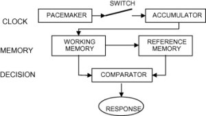 The connection between the timing deficit and delusions in schizophrenic patients is supported by physiological overlap between the regions implicated in time perception and those disrupted in schizophrenia. The same fronto-striatal network disrupted in patients with schizophrenia11 has been shown to be integral to the representation of time information12,13 (see pacemaker-accumulator model above). In particular, the transmission of dopamine in this network is crucial to both timing and the disruption observed in schizophrenia14,15. Despite the overlap in this circuitry, support for the relationship between disrupted timing and other symptoms of schizophrenia is weak.