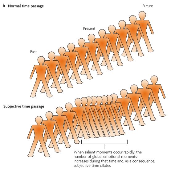 A more recent area of interest to both schizophrenia and time perception research is the insula (The mind and body are integrated in the insula, says UCSD’s Dr. Martin Paulus) . The insula is a key neural structure involved in the awareness of internal state, or interoception*, which contributes to the sense of self16. It has been proposed that it is the awareness of self, mediated by the anterior insula in particular, that provides a basis by which people can estimate time intervals17–19. Evidence for this is provided by the fact that more salient internal events cause subjective dilation of time18.