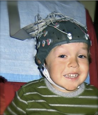 Young child capped and ready for an EEG study. Source: Neville brain development lab.