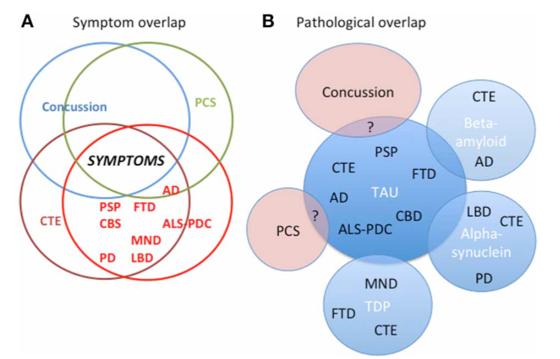 Figure from Tartaglia et al. (2014) showing the overlap of symptoms in different concussion-related and non-concussion-related disorders. The connections between these different disorders is still unclear and the subject of intense ongoing research.