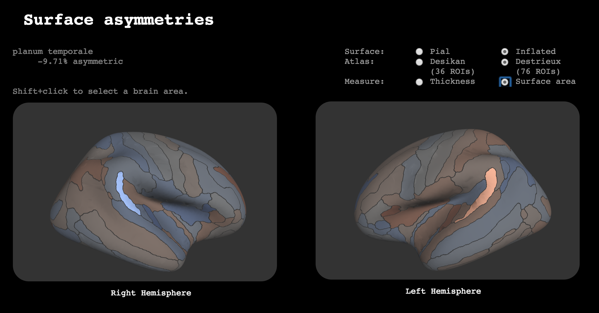 In this web-based dynamic poster (depicted below), users can explore brain asymmetries over development using interactive brains, manhattan plots, scatter plots, and similarity matrices. Our dynamic visualizations made some (unexpected!) results obvious; I’ll be there to add information and guide you through some of the less obvious results.