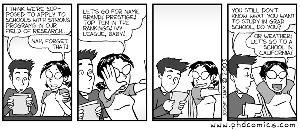 I’m no expert on choosing graduate schools or advisors — after all, I’ve only done it once. However, I’ve witnessed my colleagues disperse in all sorts of directions as far as institutions and advisors, some for better, and some for ehh not so good.