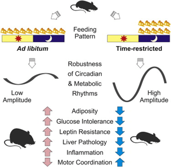 9. Hatori, M., Vollmers, C., Zarrinpar, A., Ditacchio, L., Bushong, E., Gill, S., . . . Panda, S. (2012). Time-Restricted Feeding without Reducing Caloric Intake Prevents Metabolic Diseases in Mice Fed a High-Fat Diet. Cell Metabolism, 15(6), 848-860. doi:10.1016/j.cmet.2012.04.019