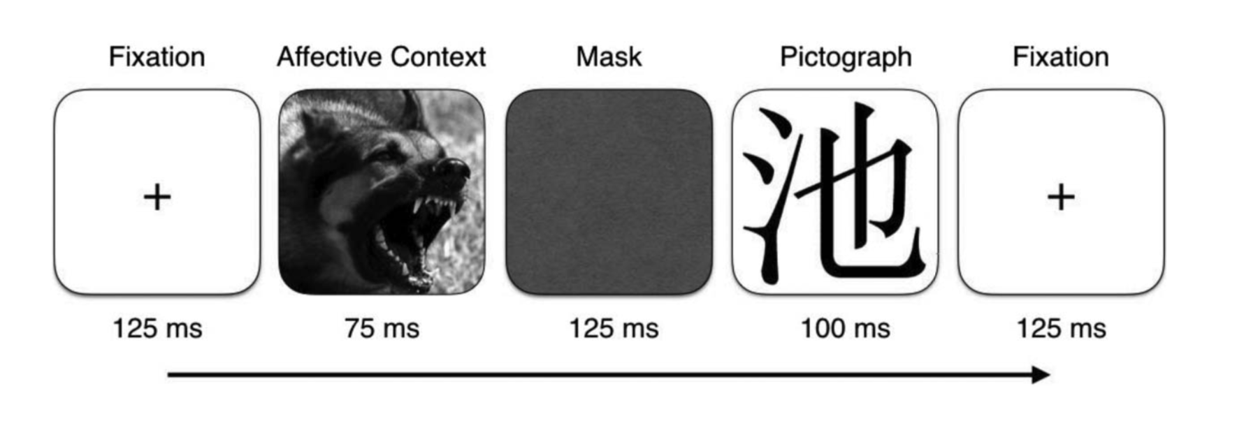 In 2019, researchers at the University of North Carolina at Chapel Hill set out to answer this question [8]. The researchers showed study participants a series of pictures. The first image was designed to invoke positive, negative, or neutral feelings. The second image was a completely neutral image of a Chinese character, which had no meaning to this group of participants, and the subjects were asked to rate the pleasantness or unpleasantness of the character. The researchers found that hungry subjects only rated the character as unpleasant when they were already primed with a negative image first (e.g. an image of an attacking wolf).