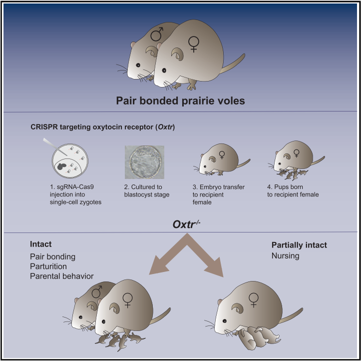 10Berendzen, K. M., Sharma, R., Mandujano, M. A., Wei, Y., Rogers, F. D., Simmons, T. C., Seelke, A. M. H., Bond, J. M., Larios, R., Goodwin, N. L., Sherman, M., Parthasarthy, S., Espineda, I., Knoedler, J. R., Beery, A., Bales, K. L., Shah, N. M., & Manoli, D. S. (2023). Oxytocin receptor is not required for social attachment in prairie voles. Neuron. https://doi.org/10.1016/j.neuron.2022.12.011