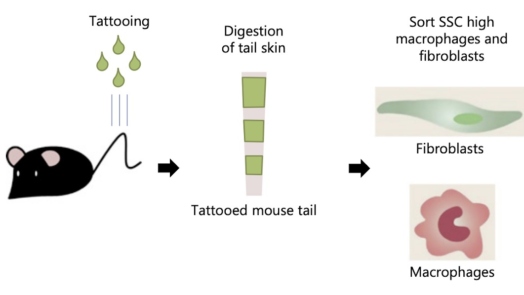 [8] Strandt, H., Voluzan, O., Niedermair, T., Ritter, U., Thalhamer, J., Malissen, B., Stoecklinger, A., & Henri, S. (2020). Macrophages and fibroblasts differentially contribute to tattoo stability. Dermatology, 237(2), 296–302. https://doi.org/10.1159/000506540