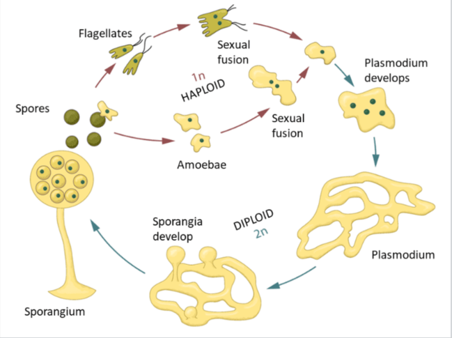 Slime molds have long puzzled biologists. During one phase of their life cycle, they form spore-producing structures that look slimy and mushroom-like (Fig. 1), which led scientists to once classify them as fungi [1]. However, slime molds aren’t fungi, plants, or animals. They belong to an entirely different group of organisms: the protists.
