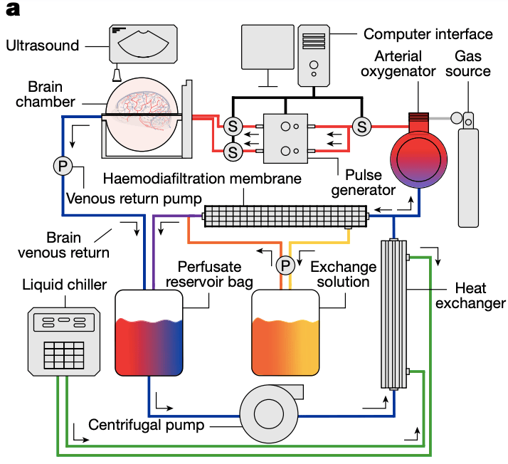 [1] Vrselja, Daniele, Silbereis, et al. (2019). Restoration of brain circulation and cellular functions hours post-mortem. Nature 568(18):336-343. https://doi.org/10.1038/s41586-019-1099-1